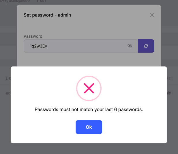 Administrators can enable password reuse prevention by toggling the related setting on the Administration -> Settings -> Identity Management page: