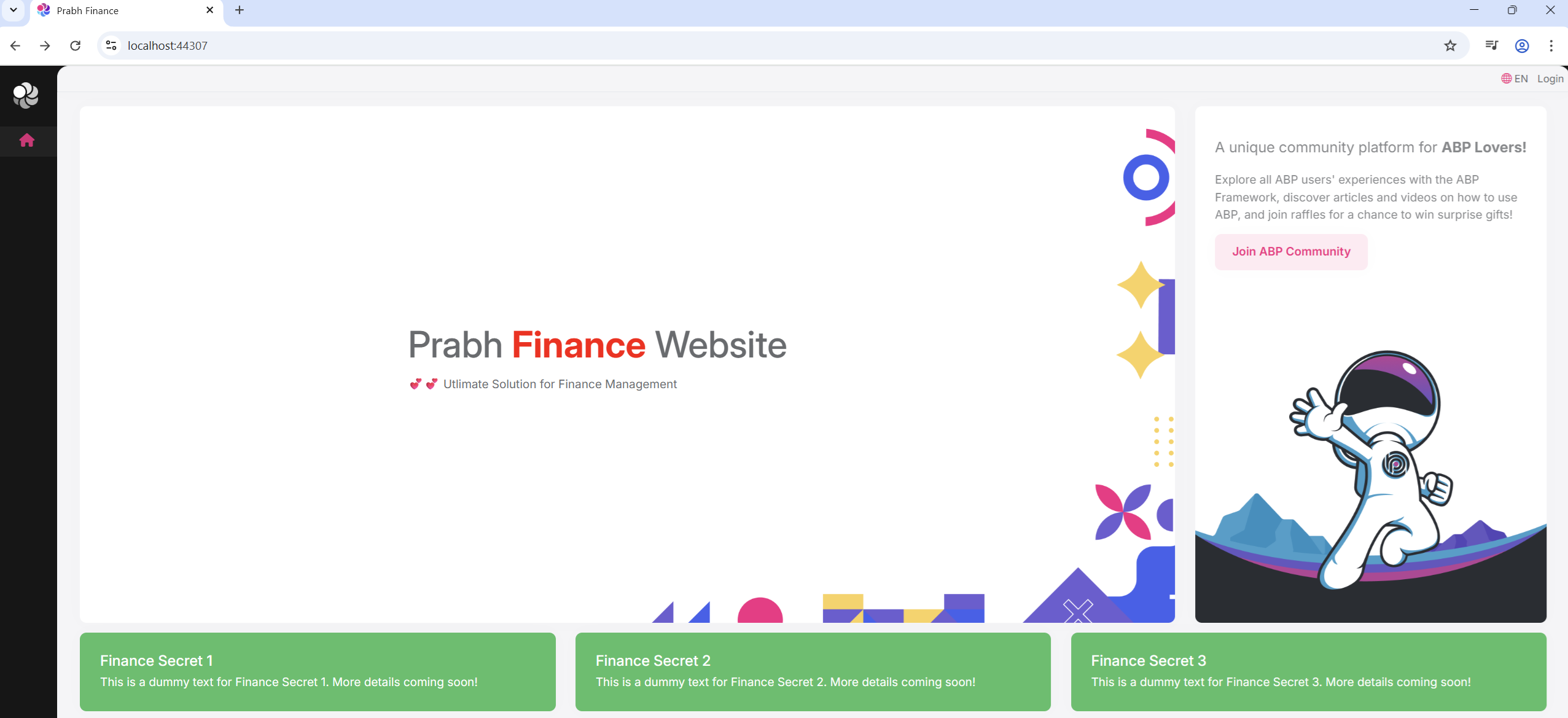 - If you try to run more than one ABP application's UI at the same time through visual studio, you might encounter issues while running. A simple workaround is to open the second application in a different browser.