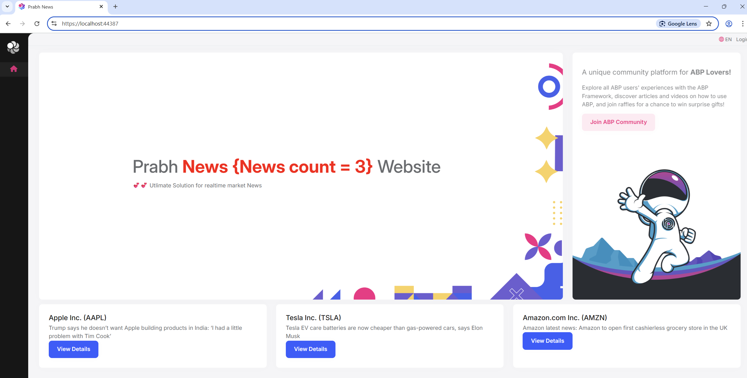 Prabh.Stock.Blazorapplication to start the UI. - Repeat above steps for Prabh.News and Prabh.Finance