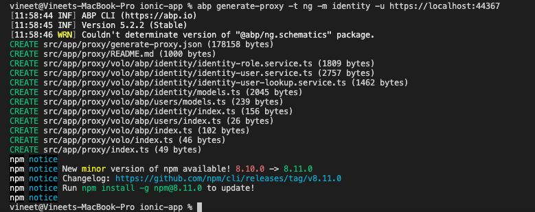 We will be using ABP with Angular UI for our backend, so we will first create a new solution using the ABP CLI. Use the following command to create a ABP Angular Solution called IonicApp.