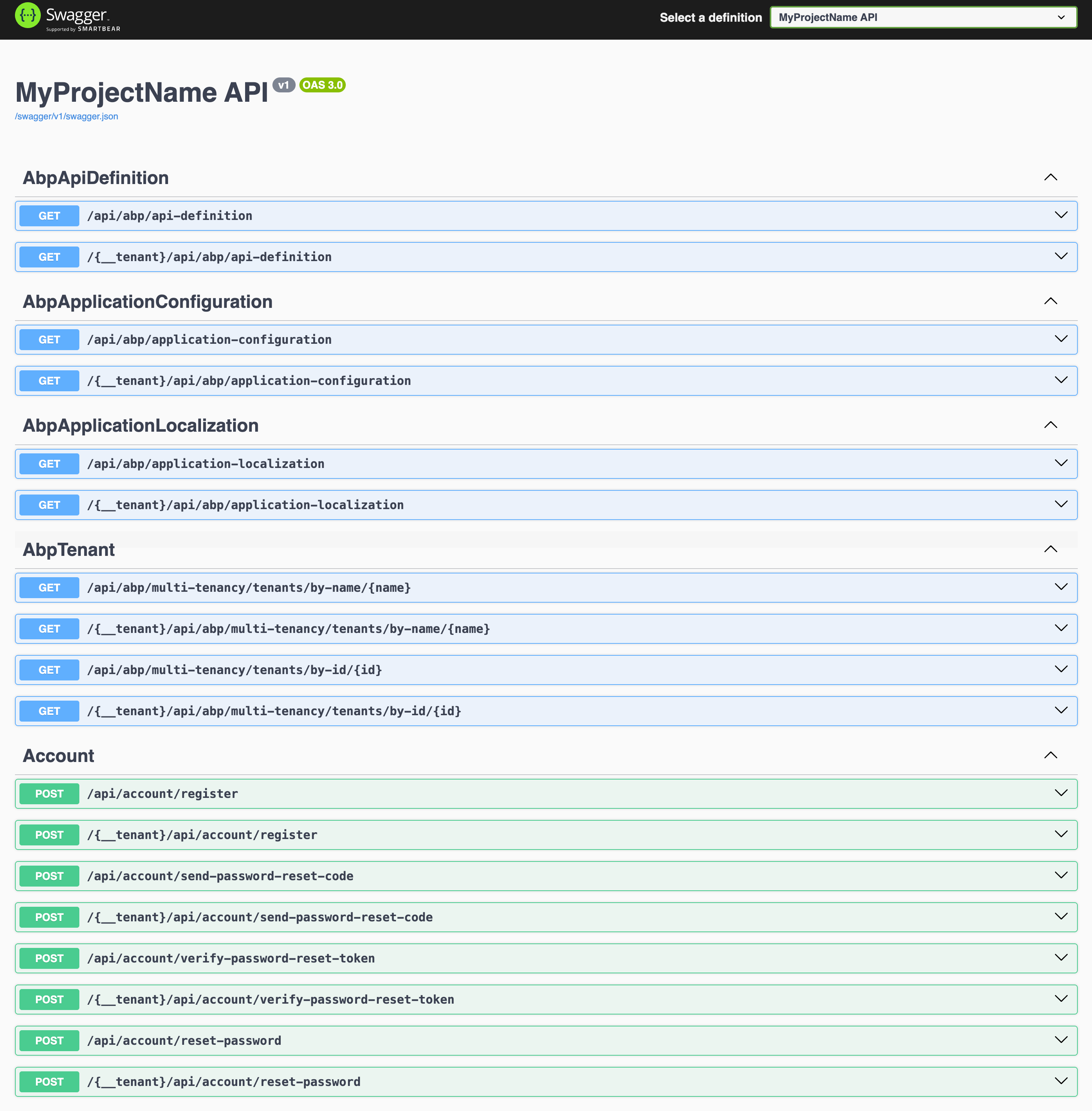 After implementing this, you'll notice that all controllers in your Swagger UI will have the {__tenant} route added: