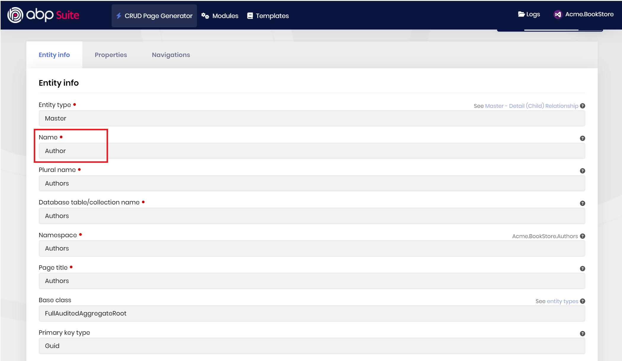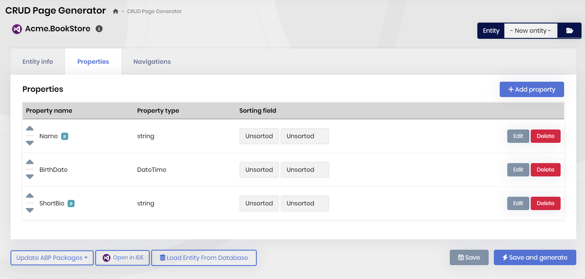 and generate all necesssary code via ABP Suite with few clicks. After creating the Author