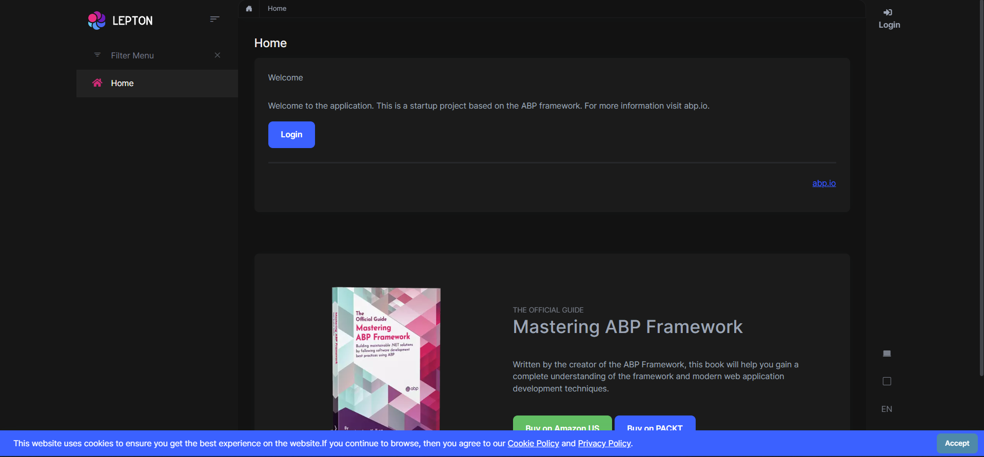 This feature is enabled by default for the Application and Application Single Layer Startup Templates. You can easily enable/disable showing Cookie Consent by configuring the AbpCookieConsentOptions