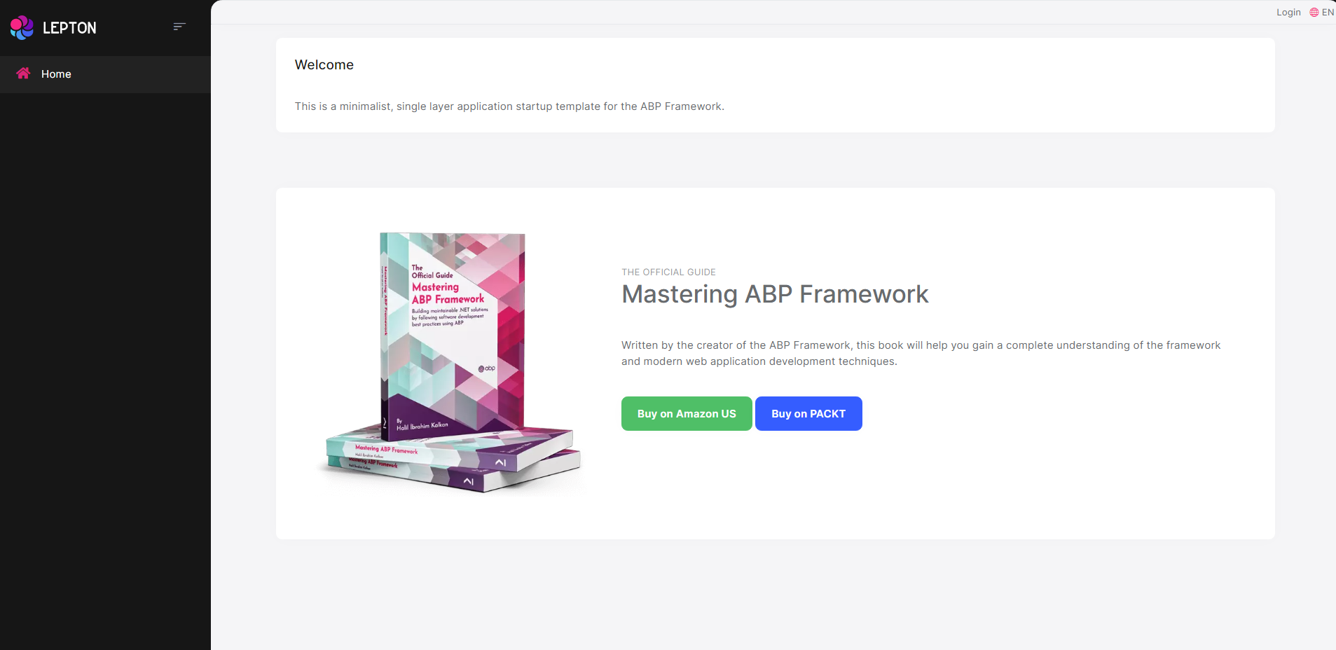 Enter admin as the username and 1q2w3E* as the password to login to the application. The application is up and running. You can start developing your application based on this startup template.