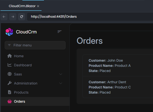 GetListAsyncmethod of theOrderAppServiceclass to fetch the product details using theIProductIntegrationServiceinterface. We first fetch the product IDs from the orders, then call theGetProductsByIdsAsyncmethod of theIProductIntegrationServiceinterface to fetch the product details. Finally, we map the product names to theOrderDtoobjects.