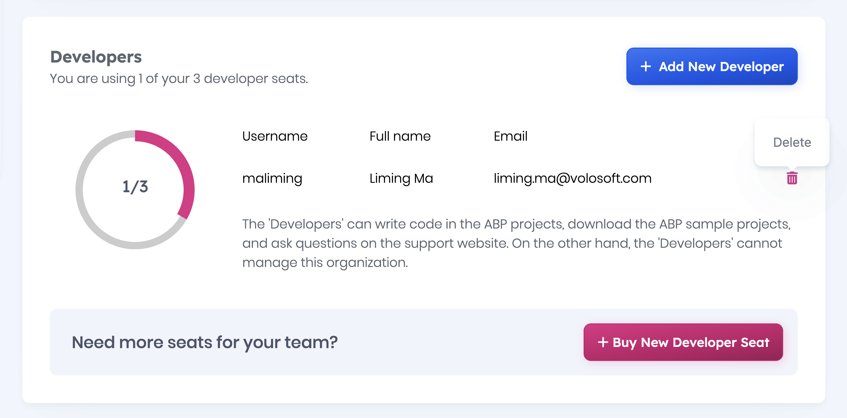 ABP-LIC-0012 - License Error! Given user 'xx' has reached the maximum allowed developer computer count (2) for the organization 'xx Information'. how to fix ?