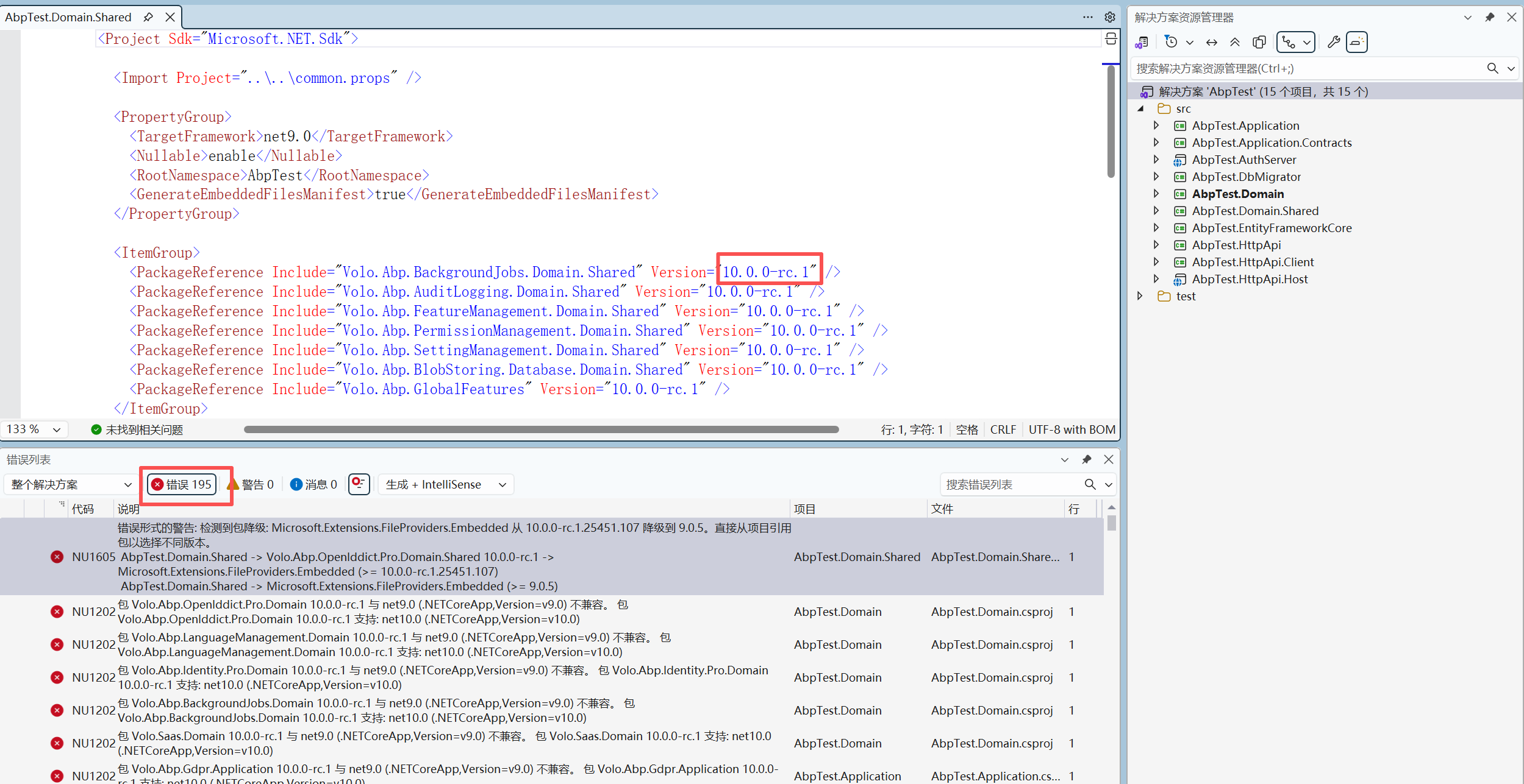 dotnet restoreanddotnet buildin your solution directory. - If you see package downgrade or missing dependency errors, ensure all ABP-related NuGet packages are on the same 10.0.0-rc.1 version, and that your global.json (if present) points to .NET 10.0.