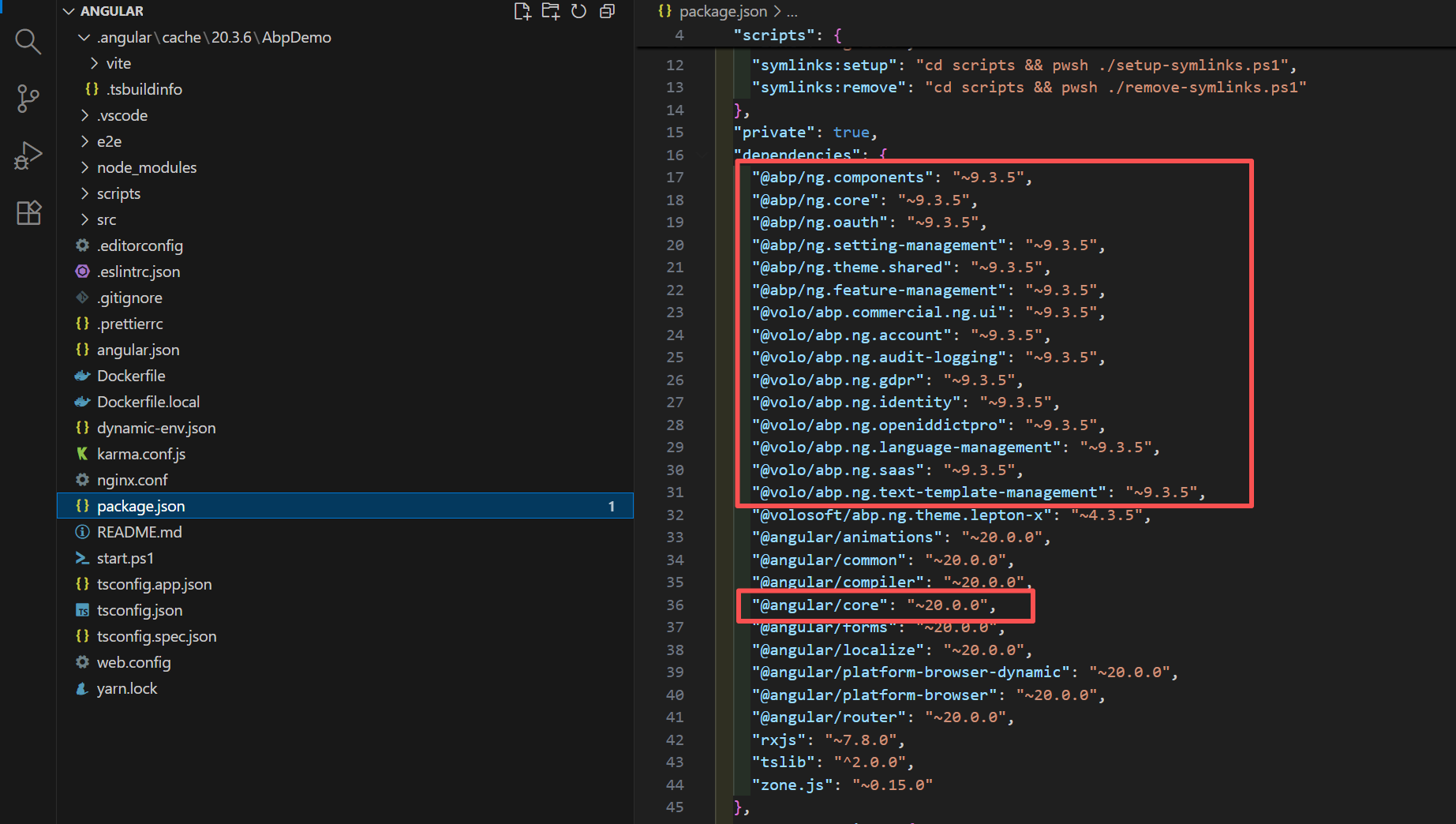 - The Angular template should already use Angular 20 and the correct ABP NPM packages after switching to preview.