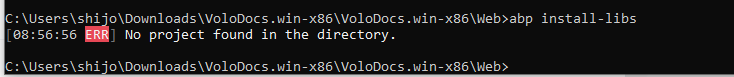 To resolve the error "Could not find file '/libs/prismjs/themes/prism-okaidia.css'" when running the VoloDocs application, you need to install the required client-side libraries. ABP Framework uses a client-side resource management system, and these libraries are not included in the ZIP by default.