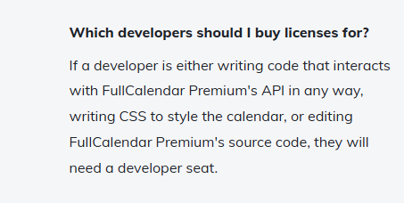 - If you use any FullCalendar Premium plugins/features or your usage requires a commercial license, purchase a license directly from FullCalendar and include your license key in your app per their documentation.