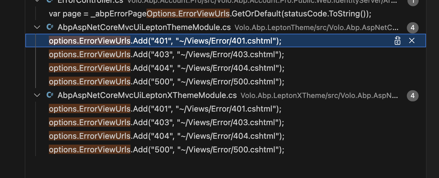 - Remove any Configure<AbpErrorPageOptions>() entries you copied from Lepton to avoid duplicate keys; LeptonX already configures these.