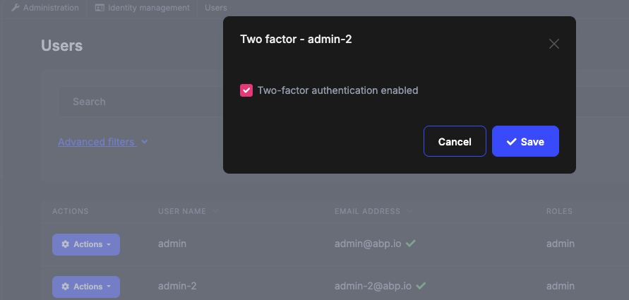 - https://abp.io/docs/commercial/8.1/modules/identity/two-factor-authentication