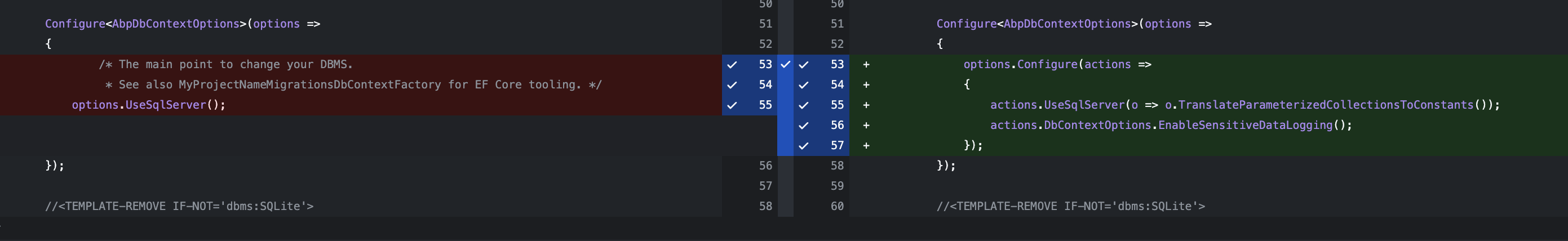 TranslateParameterizedCollectionsToConstants. We are using abp framework 8.2.1 -
