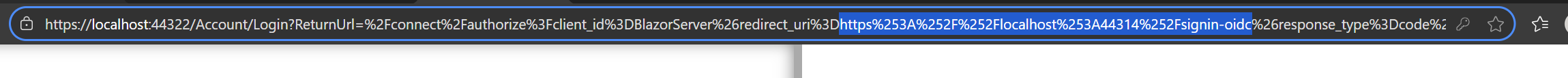 - Incorrect (double-encoded redirect_uri inside ReturnUrl): https://<auth-server>/Account/Login?ReturnUrl=%2Fconnect%2Fauthorize%3Fclient_id%3DBlazorServer%26redirect_uri%3Dhttps%253A%252F%252Flocalhost%253A44314%252Fsignin-oidc...