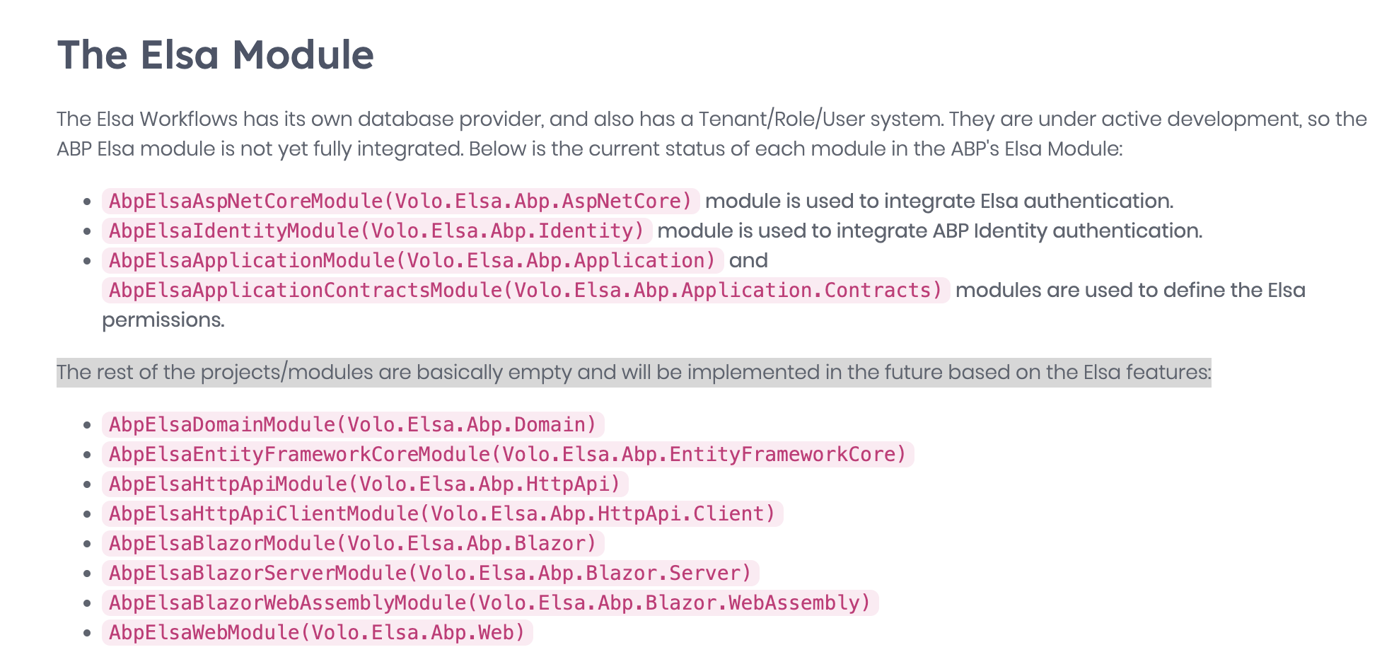 • Volo.Elsa.Abp.Application, Volo.Elsa.Abp.Application.Contracts (permissions)