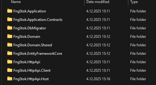 Those “layers” are the standard ABP solution structure for a modular, maintainable backend. The Angular app consumes the backend APIs from the HttpApi.Host. Even if you don’t touch each C# project directly, they are required for a functional backend and for features like permissions, auditing, data seeding, migrations, etc.