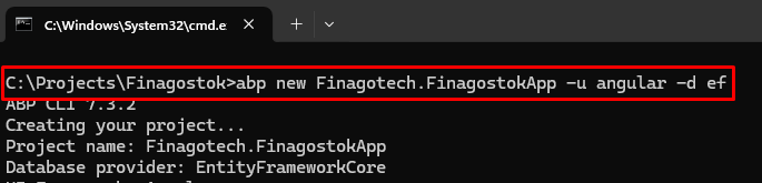 - Full app (Angular UI + Backend, what you used): abp new MyApp -u angular -d ef