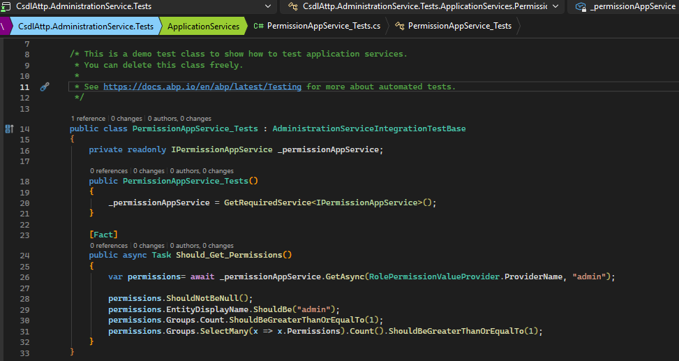 CsdlAttp.AdministrationService.Tests.ApplicationServices.PermissionAppService_Tests.Should_Get_Permissions (5s 46ms):