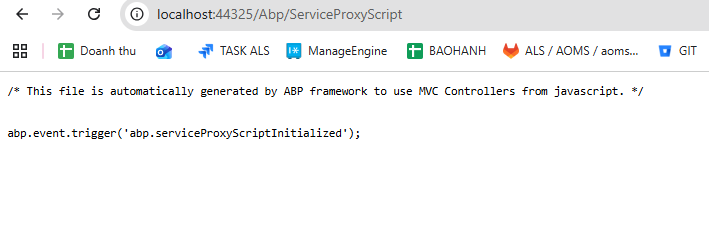 After that, run the WebCMS.Web: http://localhost:44325/ and check abp/serviceproxyscript endpoint