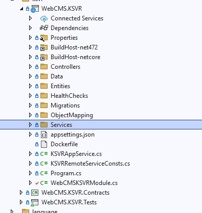 Url WebCMS.Web: http://localhost:44325/ Url WebCMS.KSVR (microservice) : http://localhost:44303/