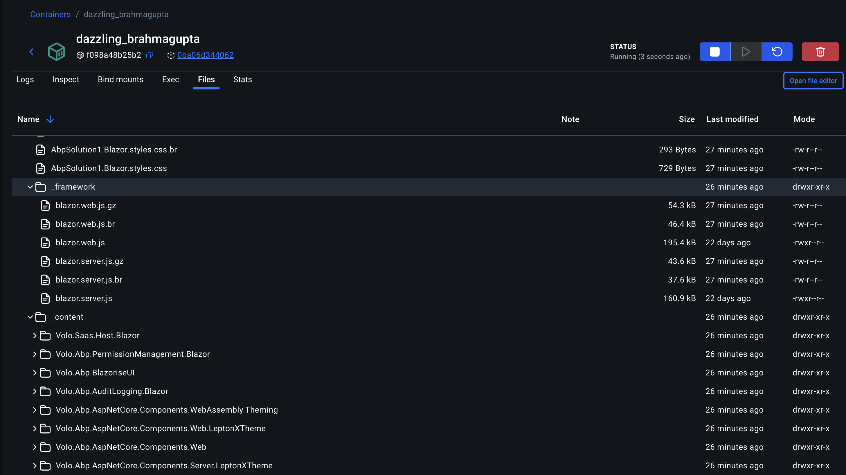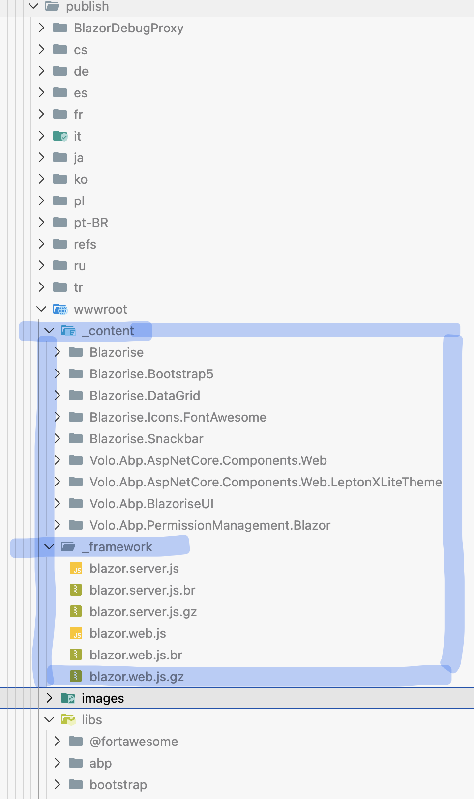 FROM mcr.microsoft.com/dotnet/aspnet:10.0 AS final WORKDIR /app COPY ./src/YourCompany.YourApp.Blazor/bin/Release/net10.0/publish/ . ENTRYPOINT ["dotnet", "YourCompany.YourApp.Blazor.dll"]Verify that the path exists locally and contains the “_framework” under wwwroot/_framework or in static web assets folders included by the publish output.