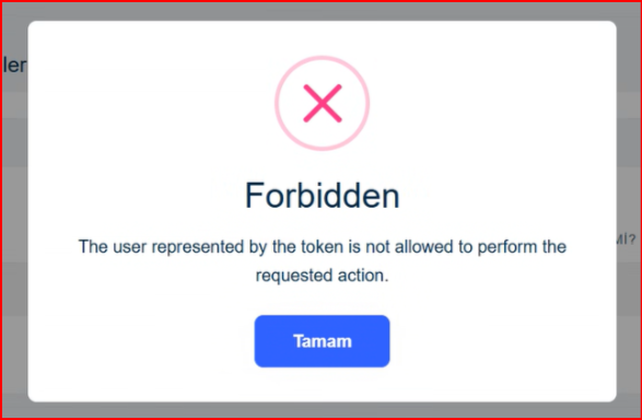 tr.json { "culture": "tr", "texts": { "Volo.Abp.Authorization:DefaultErrorMessage": "Belirteçle temsil edilen kullanıcı bu işlemi yapmaya yetkili değil.", "Volo.Abp.Authorization:Forbidden": "Yasak" } }