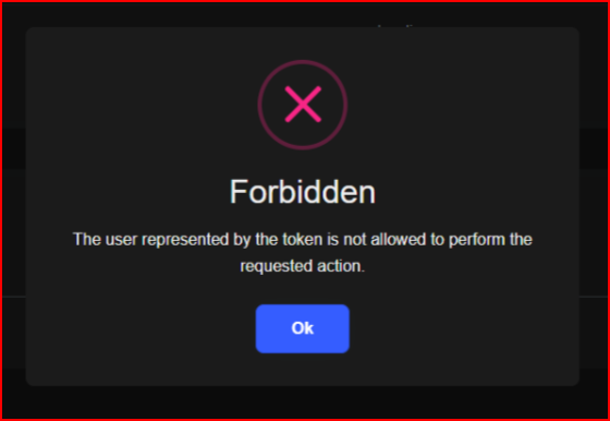 en.json { "culture": "en", "texts": { "Volo.Abp.Authorization:DefaultErrorMessage": "The user represented by the token is not allowed to perform the requested action.", "Volo.Abp.Authorization:Forbidden": "Forbidden" } }