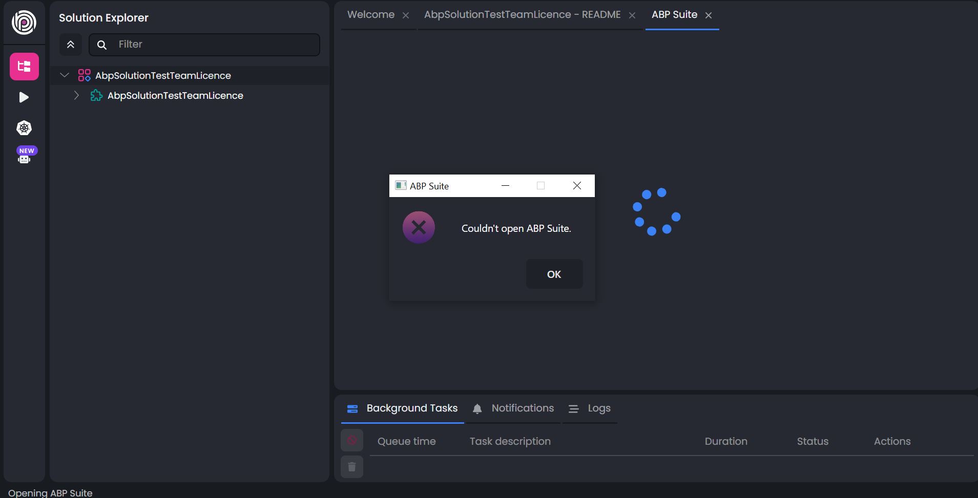 - ABP Studio cannot open ABP Suite.