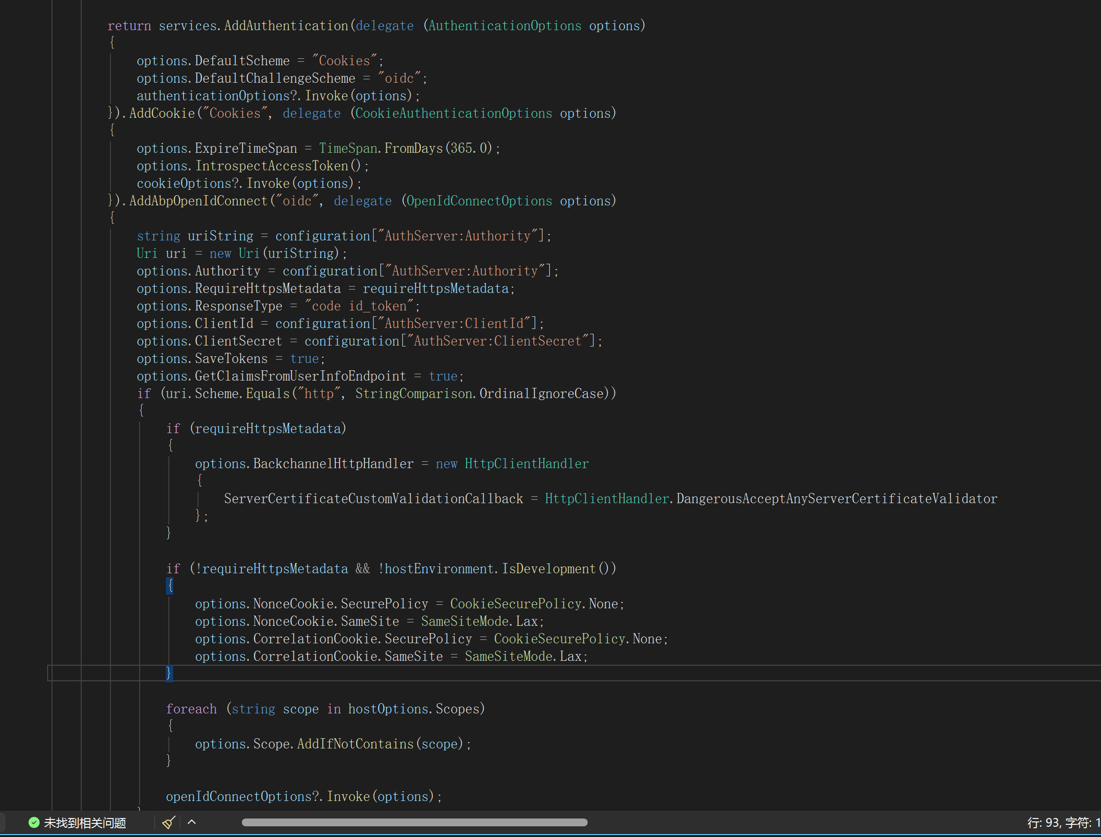 AddAbpOpenIdConnect("oidc", …)). - Cookie lifetime is long (e.g. 365 days).