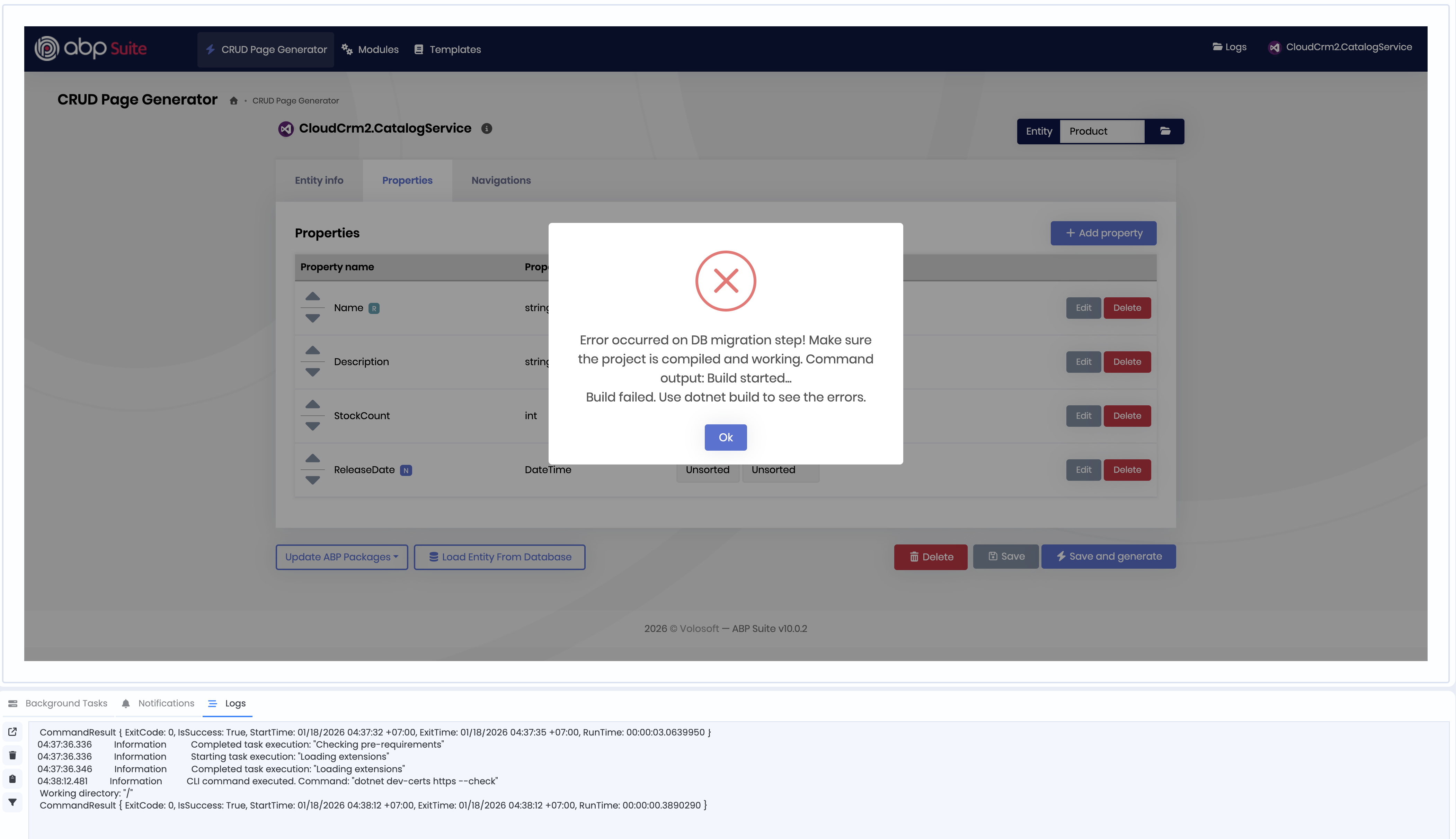 ProductConstserrors.- Open ABP Suite from ABP Studio again, go to your
