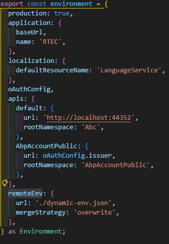 According to abp documentation I've modified the environment.prod.ts to provide remoteEnv,