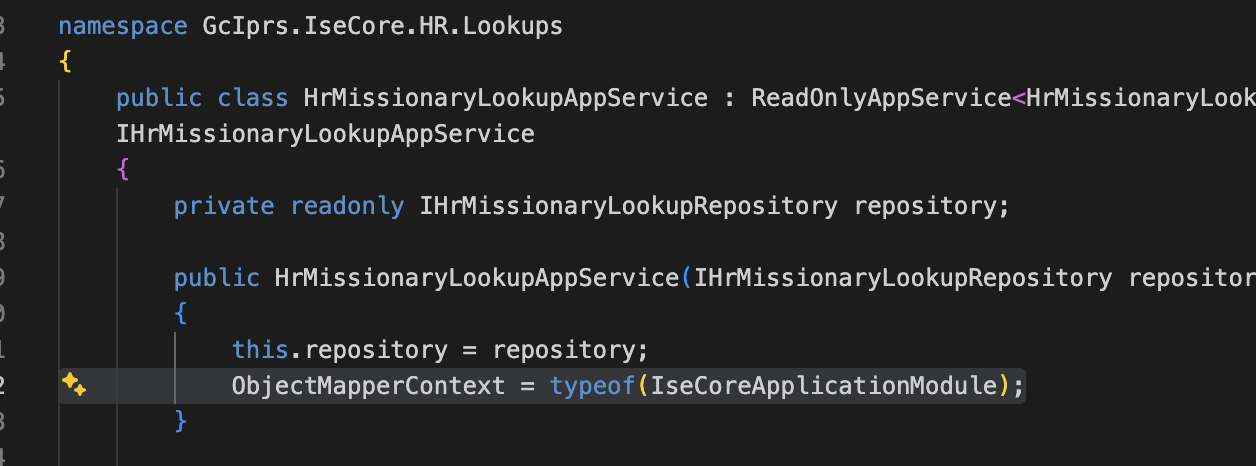Trying to do: var filter = ObjectMapper.Map<HrMissionaryLookupRequestDto, HrMissionaryLookupFilter>(input); but getting error.