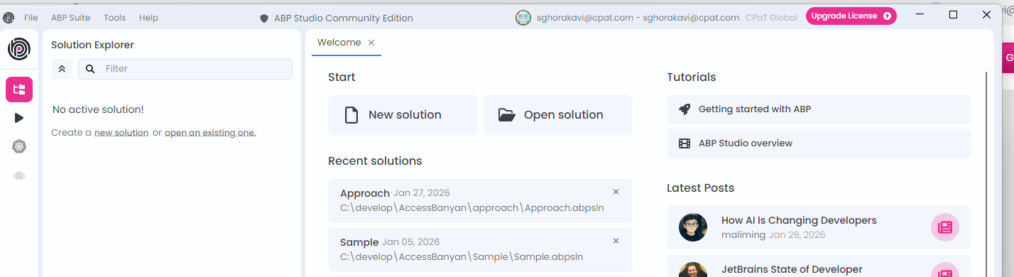 I do have a license for ABP in the web site. But my ABP Studio cannot see it. What should i do ?