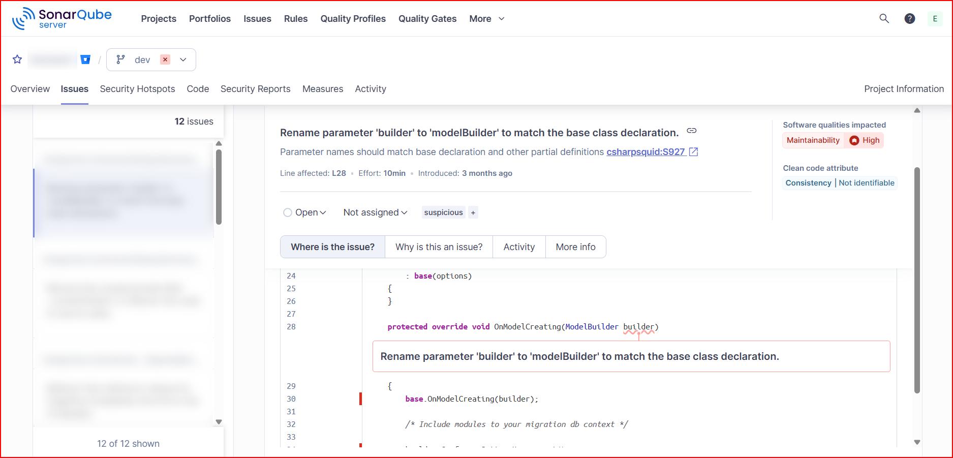 DemoDbContext.cs High Parameter names should match base declaration and other partial definitions[csharpsquid:S927]