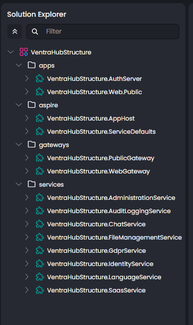 The Solution Explorer actually encompasses ABP modules and their projects, meaning they are all fundamentally .NET projects. However, Solution Runner allows us to add both C# applications and CLI applications (angular is a CLI application).