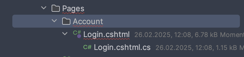 - Create Login.cshtml and Login.cshml.cs files in Account folder.