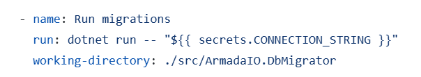 # Example: Run from command line dotnet run --project path/to/YourProject.DbMigrator