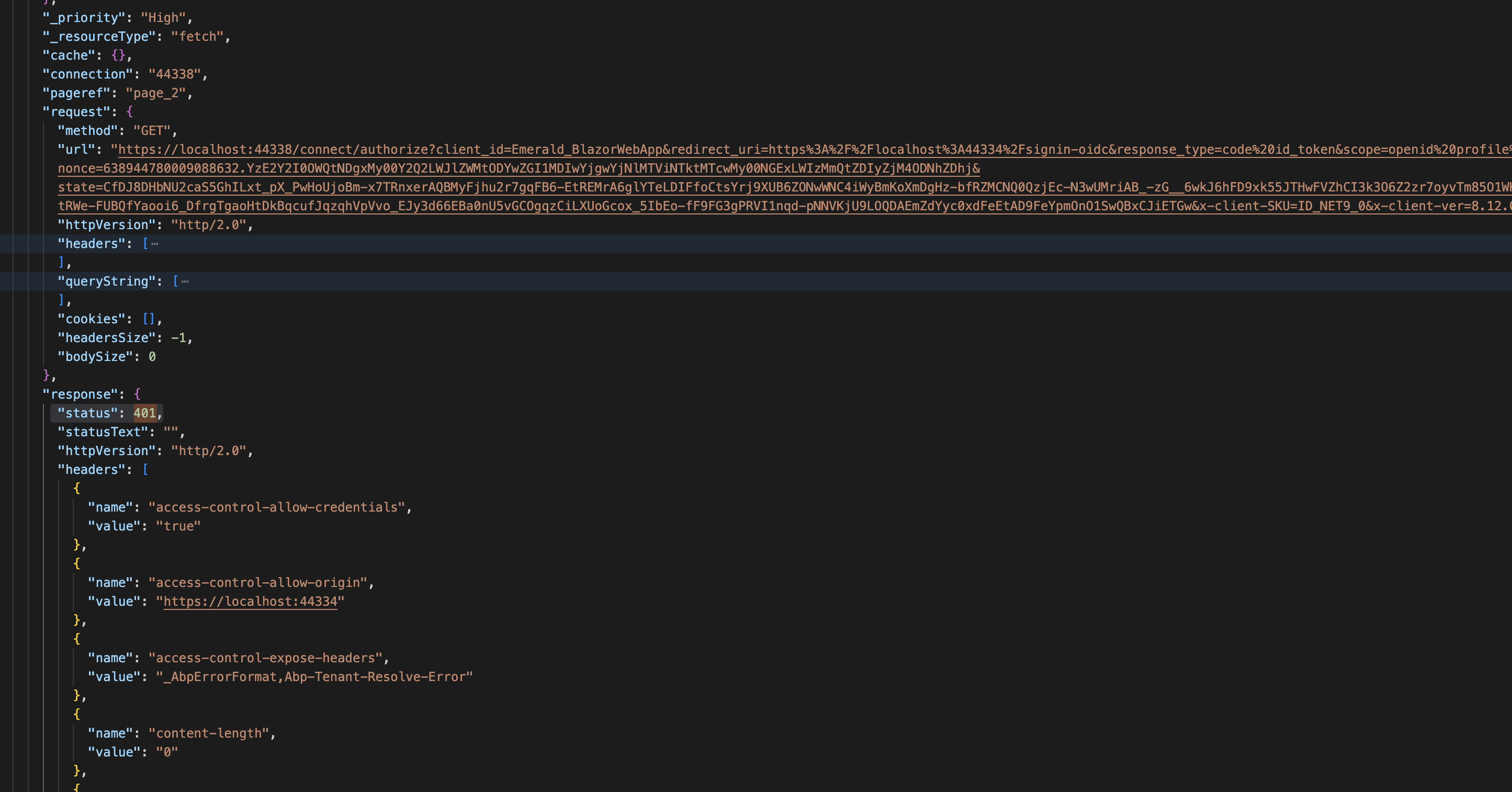 - At this point, the system shows an Unauthorized (401) error.
