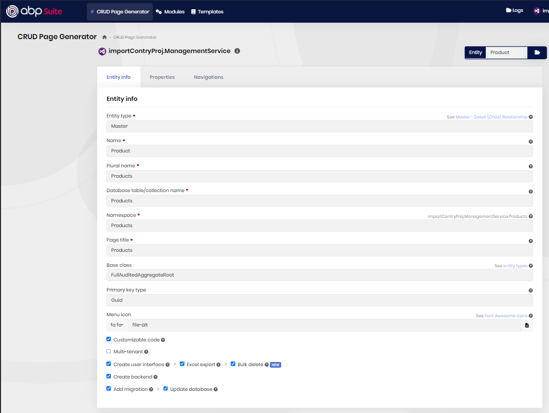- https://abp.io/docs/en/commercial/latest/abp-suite/index
