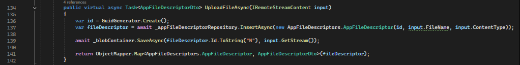 [DependsOn( typeof(AbpBlobStoringAzureModule) )] public class YourAppNameApplicationModule : AbpModule { }