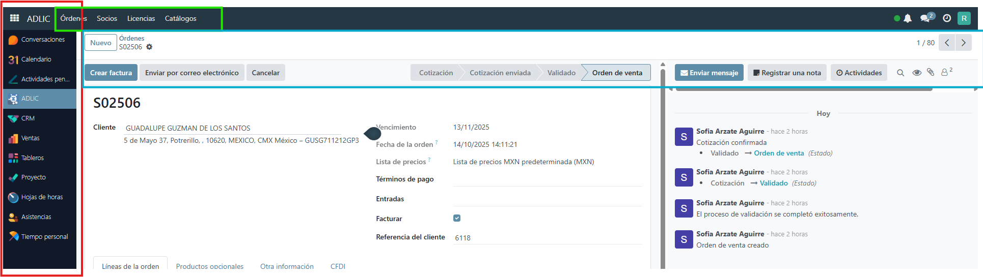 In red, the main menu. In green, a submenu based on the selected main menu item. In blue, the actions that can be executed on the currently displayed page. Alternatively, is it possible for each page associated with the main menu to be displayed in a new folder, allowing for multiple folders in the application?