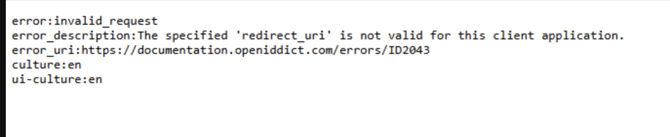 However, when navigating to the login screen from the Angular frontend, an OpenIddict-related error occurs.