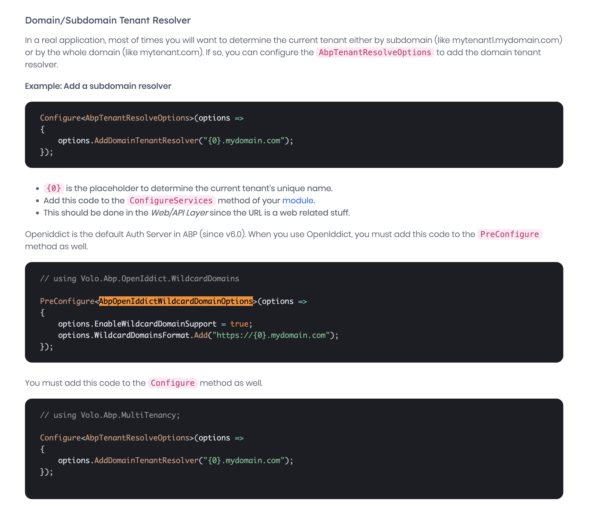 We are currently implementing domain-based tenant resolution and have been following the official ABP blog below for the implementation steps: