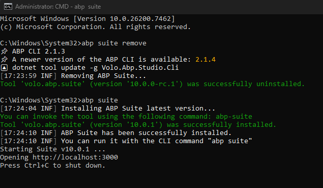 dotnet tool update -g Volo.Abp.Studio.Cli