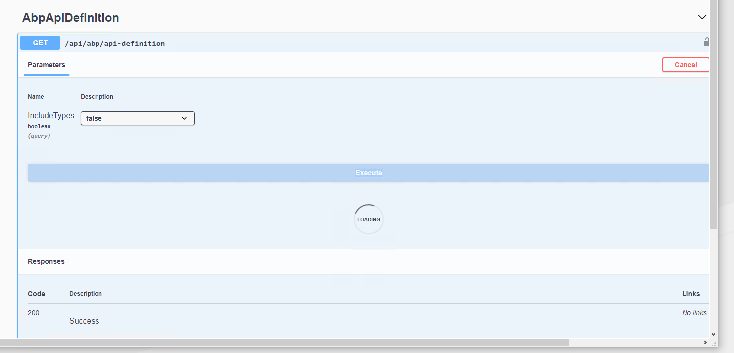Hello, After zoom meeting now we can see the swagger endpoint and swagger json but still when we make get request to /api/abp/api-definition endpoint there is no answer and after a lot of time of waiting it gives same error ?