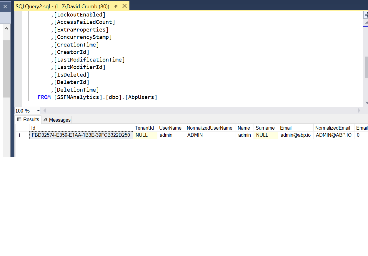 I went into the AbpUser table and select *