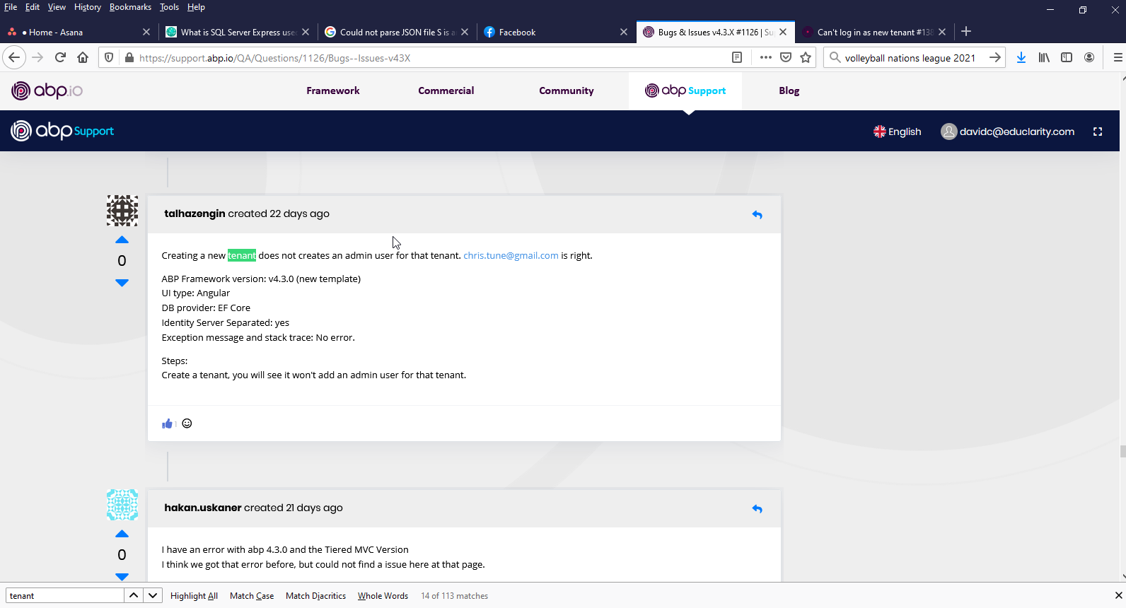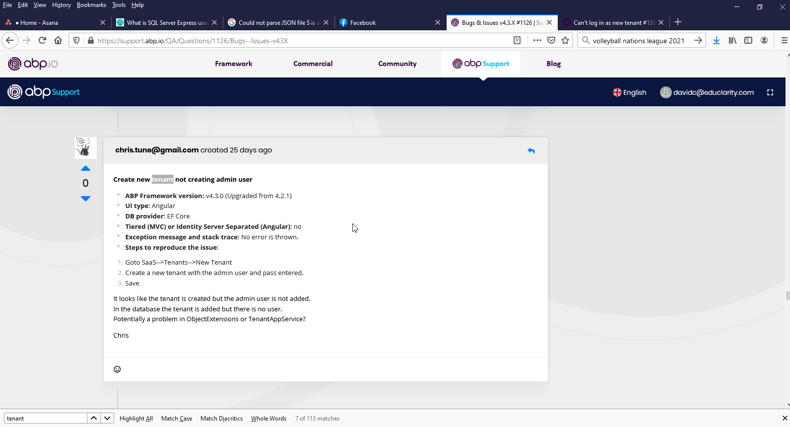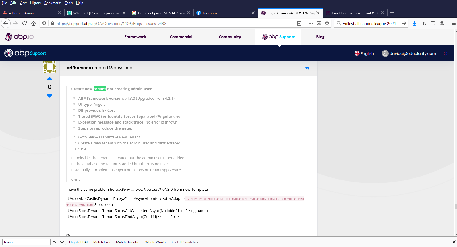 2021-05-25 00:02:25.621 -04:00 [ERR] An exception occurred while iterating over the results of a query for context type 'Volo.Saas.EntityFrameworkCore.SaasDbContext'.