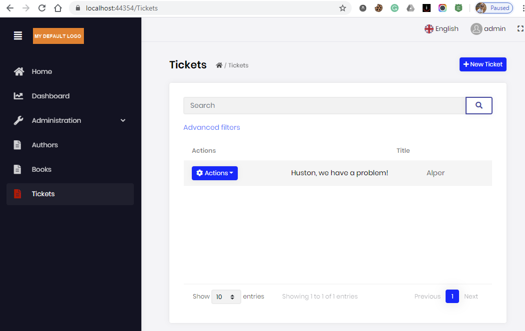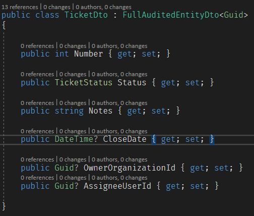 - After creating the Ticket entity with ABP Suite, I added