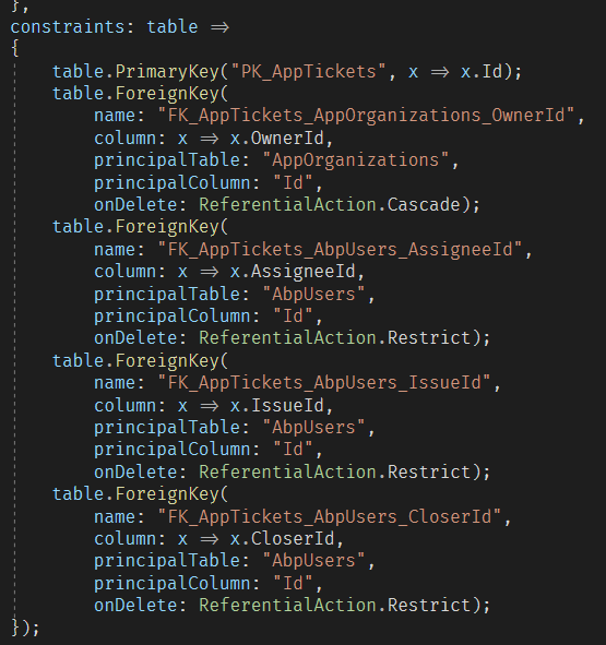 .UseIdentityColumn(1000, 1);to the Ticket's auto generated context model located here:HelpDeskDbContextModelCreatingExtensions.cs