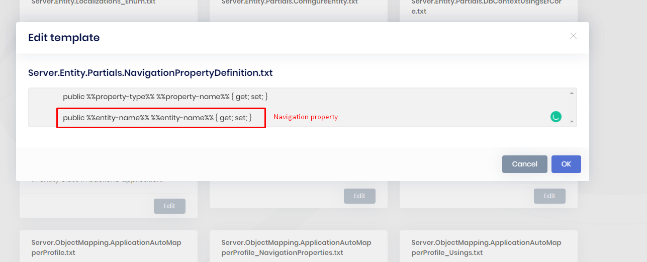 Server.Entity.Partials.NavigationPropertyDefinition.txtand remove the marked row